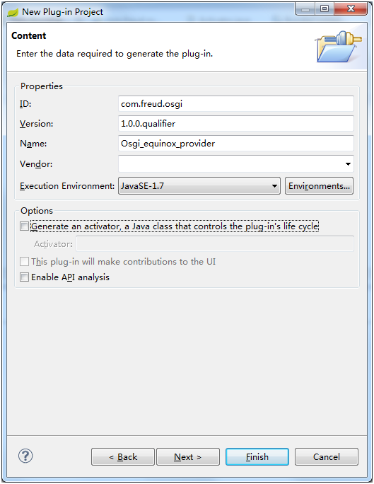 osgi_equinox_provider项目上右键->run as->Run configurations-new OSGi FrameWork
