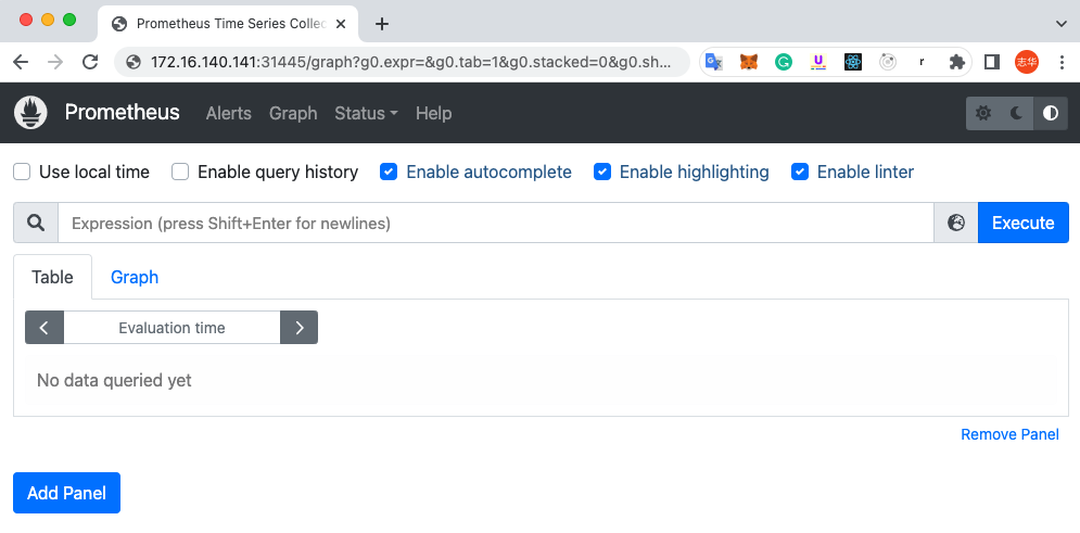 通过浏览器访问Prometheus http://172.16.140.141:31445/